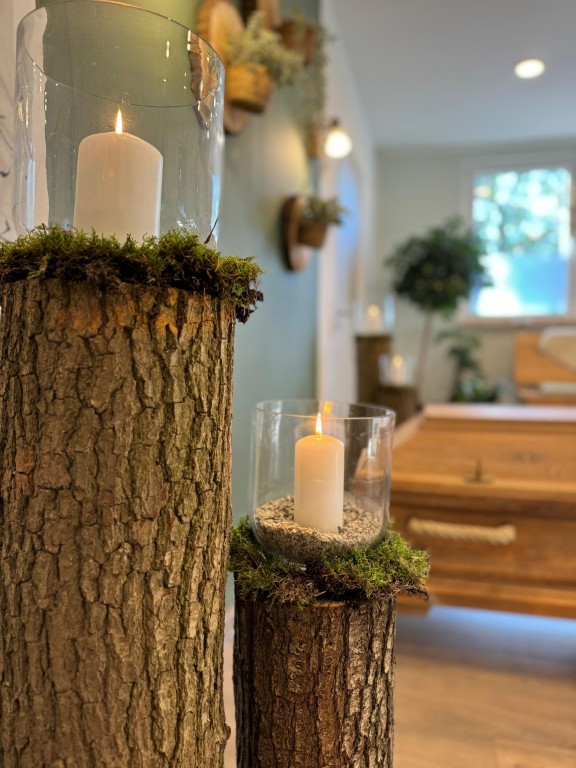 Bei der Auswahl und Gestaltung unseres Ladengeschäfts und Büros in der Innenstadt von Fritzlar war es uns besonders wichtig, den ersten Schritt in unsere Räume so unkompliziert wie möglich zu gestalten. Wir wissen, dass der Gang zum Bestatter kein leichter ist. In unseren hellen, freundlichen Räumen haben wir einen Ort geschaffen, der Ihnen Raum für Ihre Trauer gibt, ohne Sie zusätzlich zu belasten. Hier können Sie ganz ungestört und befreit über Ihre Wünsche, Ängste und Nöte rund um das Thema Bestattung reden. Hier stehen wir Ihnen gerne mit einer umfassenden und kompetenten Beratung zur Seite. In unserem Ausstellungsraum finden Sie eine Auswahl von Särgen, Urnen, Sargwäsche und anderem in unterschiedlichen Formen, Farben, Materialien und Preisklassen.